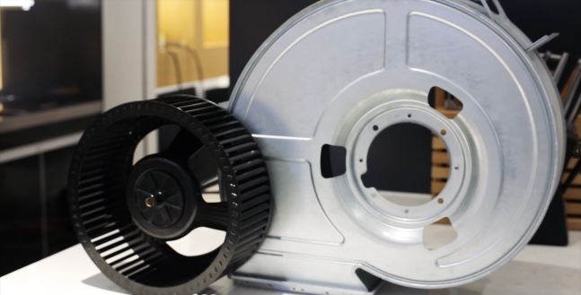 風(fēng)輪直接影響風(fēng)機(jī)的產(chǎn)風(fēng)量和集成灶風(fēng)壓,關(guān)系到集成灶油煙吸凈率的高低。工作狀態(tài)下,電機(jī)帶動(dòng)風(fēng)輪高速旋轉(zhuǎn),此時(shí)集成灶吸風(fēng)口內(nèi)的空氣壓力小于吸風(fēng)口外的空氣壓力,空氣和油煙沿著渦殼內(nèi)壁的方向從進(jìn)氣口外向進(jìn)氣口內(nèi)流動(dòng)。同時(shí),排氣口內(nèi)的空氣壓力大于排氣口外的空氣壓力,排氣口內(nèi)空氣向排氣口外流動(dòng)。