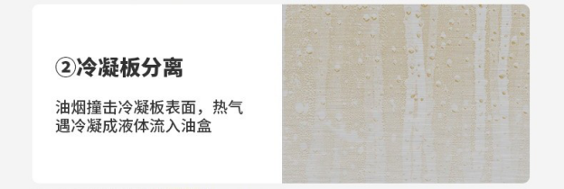 此時油和煙的重量差異最大,通過不沾油特氟龍濾網(wǎng)的阻擋,可以非常高效地將油和煙分離開,實現(xiàn)大量重油煙分子在濾網(wǎng)過濾分離。