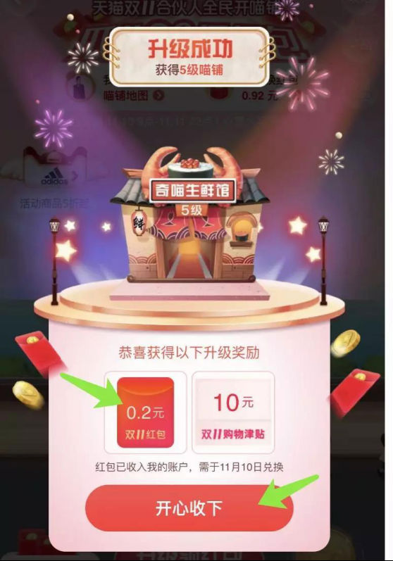 首先你要將喵鋪升到5級,才可以進(jìn)行組隊(duì)蓋樓大挑戰(zhàn)。好不容易將喵鋪達(dá)到了5級,心情激動的收下兩毛錢的紅包……