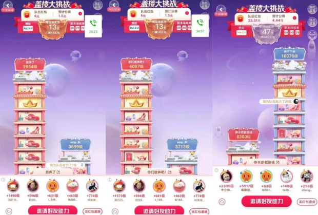 接著就開始了漫長的蓋樓任務(wù),按照兩隊(duì)的隊(duì)伍高樓總等級高低來衡量勝負(fù),獲勝隊(duì)伍可瓜分本場隊(duì)伍紅包。隊(duì)伍的高樓總等級可通過隊(duì)員上線助力、拉人助力等方式提升。