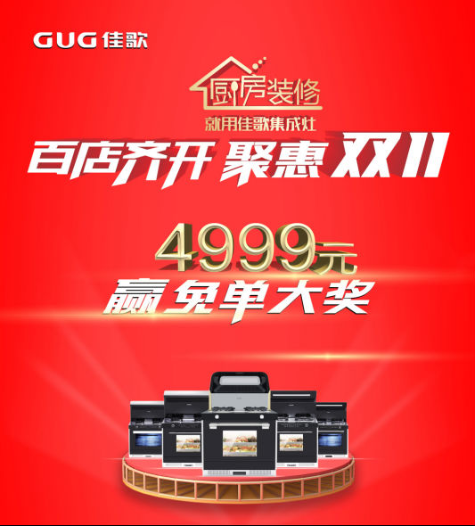 佳歌集成灶“4999免單大獎等著你,寄希望于幾毛錢的紅包,不如走進(jìn)佳歌集成灶一次搞定一個(gè)廚房。