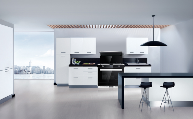 集成灶的側(cè)吸下排原理,近距離高效吸油煙,讓油煙無(wú)處可逃。同時(shí),由于集成灶上部沒有煙機(jī),做吊柜的自由度更高。