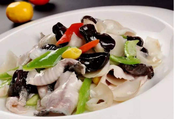 2、油鍋,入蔥、姜末煸香,倒入魚片、山藥片翻炒。
