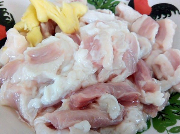 3、加料酒、蔥、姜、鹽,再炒熟。