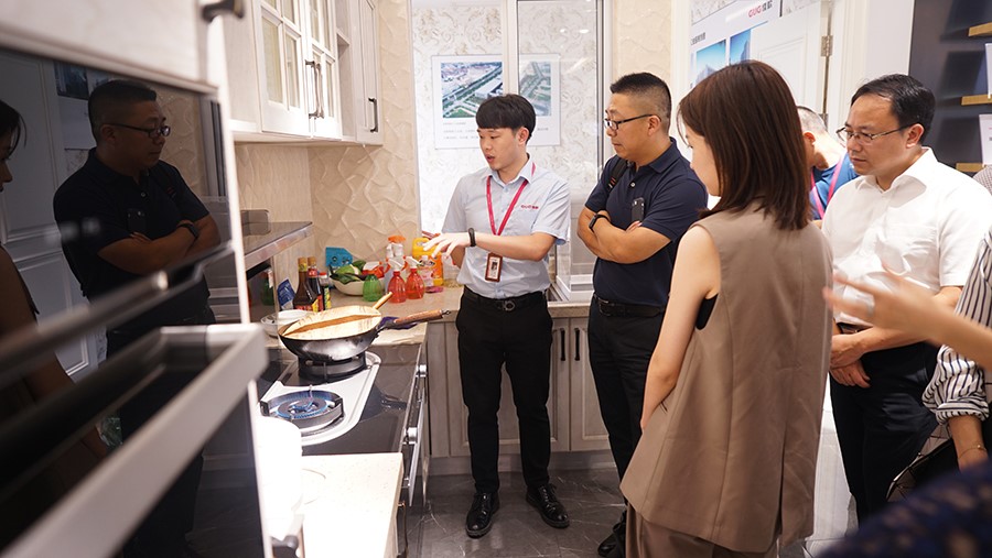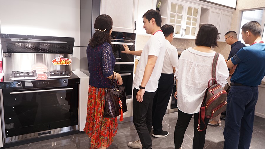 考察團(tuán)一行來(lái)到佳歌集成灶展廳近距離體驗(yàn)了一把佳歌集成灶的使用感受。佳歌所有產(chǎn)品均出自全球頂尖設(shè)計(jì)師之手,真正的精雕細(xì)琢,整體外觀一體成型,99.96%的凈煙能力,5.0kW超大火力都無(wú)一不讓考察團(tuán)拍手稱贊。