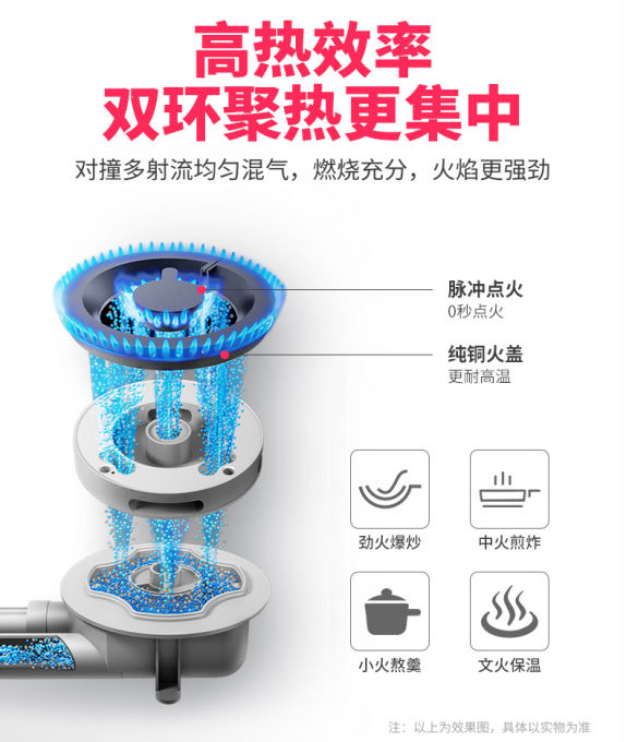 自主研發(fā)設(shè)計雙環(huán)純銅節(jié)能高效燃燒器,額定熱負(fù)荷達(dá)到5.0kW,突破火力臨界點(diǎn),遠(yuǎn)超國家一級能效標(biāo)準(zhǔn)。