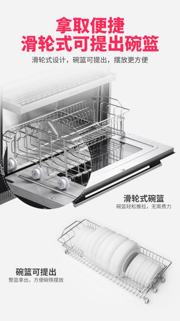滑輪式可提出碗籃設(shè)計,讓碗籃即使?jié)M載也能輕松推拉,還能將整個碗籃直接提出。