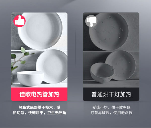 60°恒溫烘干,熱氣充滿整個內(nèi)腔,使得碗盤受熱更均勻,烘干更快,讓碗筷原理潮濕,避免了二次污染。